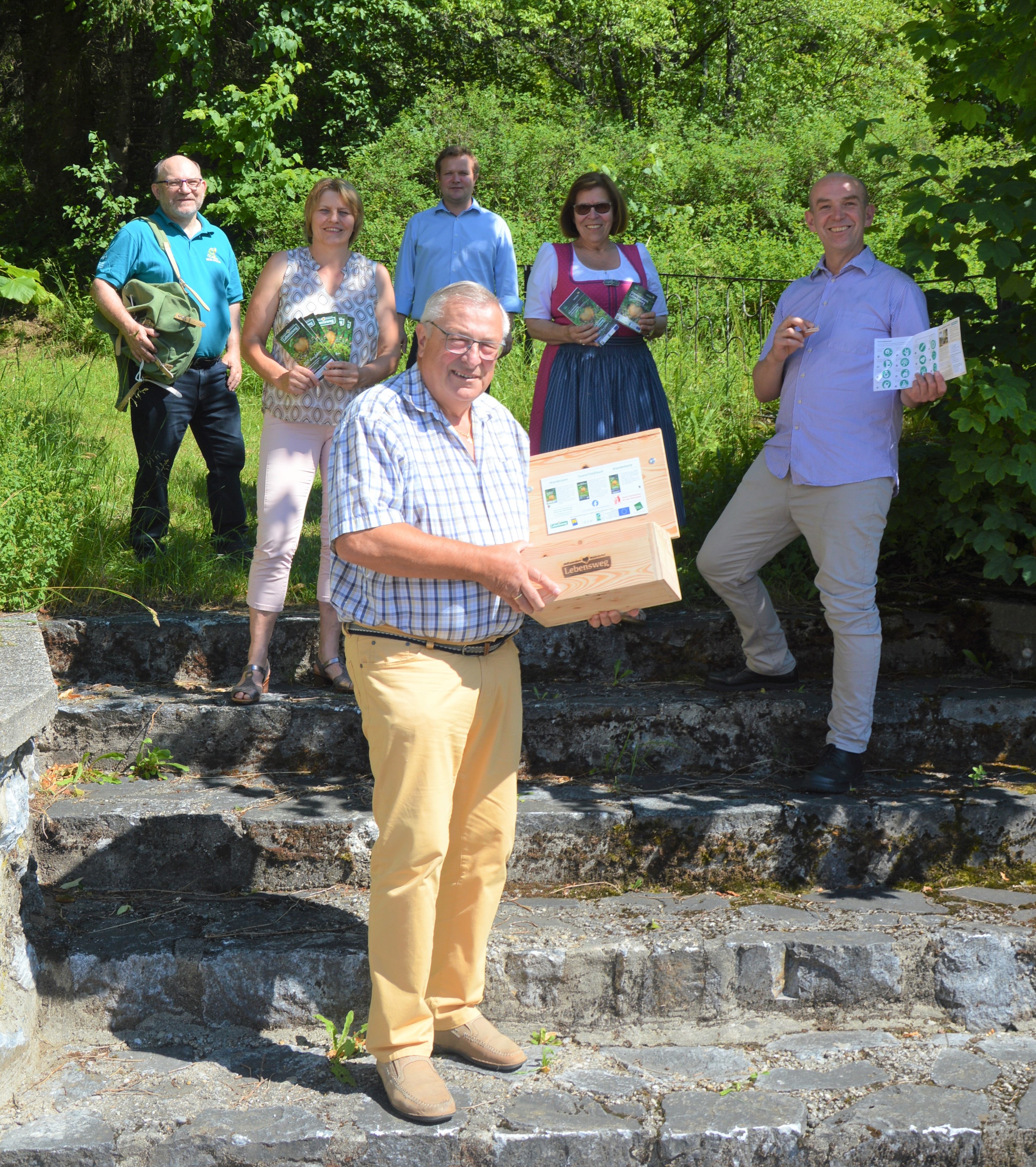 Das Vorstandsteam vom Verein Lebensweg ist stolz auf die Wanderkarte (hinten, v. l.): Friedrich Fürst, Dieter Juster, Konrad Friedl, Manfred Hackl; (vorne, v. l.): Ingrid Kleber, Angela Fichtinger und Benno Sulzerger.