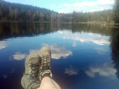 Ameisenhügel, Bäume, die Sonne die die Nadelbäume silbern schimmern ließ, das sanfte, verletzliche Frühlingsgrün der Laubbäume erhellte, Spinnennetze, Hasen, Schlangen, Rehe, Flüsse, Seen, Wegschilder mit dem Herz für „Lebensweg“, die vielen mystischen Steine und wackeligen Steinzufälle bewunderte ich wie ein Kind es wahrscheinlich tut (ich tat es, es erinnerte mich daran).