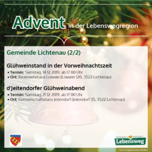 Ort: Feuerwehrhaus Loiwein (Loiwein 120, 3522 Lichtenau) - d‘Jeitendorfer Glühweinabend