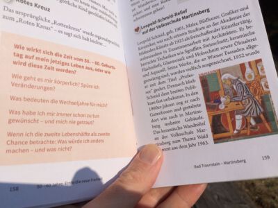 Die Fragen im Buch mit der Überschrift: Wie wirkt sich die Zeit zwischen 50. – 60. Geburtstag auf mein jetziges Leben aus? Dies passt perfekt: Ich werde heuer 53. So konnte ich heute nachspüren, welche Themen in meiner momentanen Lebensphase ganz aktuell sind.