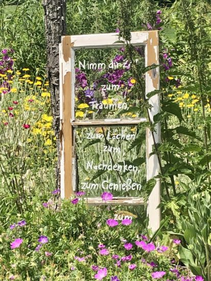 Angeregt von dem emotionalen Gespräch vergaß man fast den steilen Rückweg um wieder auf den richtigen Pfad zu finden. Ein kneippischer Kräutergarten folgte, ein Augenschmaus für uns Damen. Endlich angekommen in St. Oswald, diesen schönen Ort, den ich immer mit Glück verbinde.