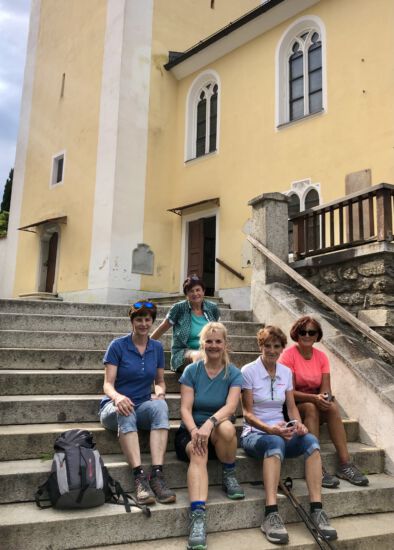 Mein großer Geburtstag kam immer näher und die fröhlichen Damen der Frühstücksrunde waren im Anmarsch. Geschmückt wurde der Hauseingang mit vielen lustigen, passenden Accessoires. Das erste Mal las ich die Zahl 60! Ich sah kurz weg, aber dann doch wieder den Tatsachen ins Auge. Ein gemeinschaftliches Geschenk sollte später übergeben werden. Aber nein, ich habe doch schon fast alles. Schnell holte ich mein LebenswegBüchlein hervor und zeigte es den Damen. Es wurde eifrig darin geblättert. Begleitung für eine Wanderetappe, das wünschte ich mir. Ein einstimmiges und begeistertes JA folgte. Die Wunschetappe wurde gleich festgelegt.