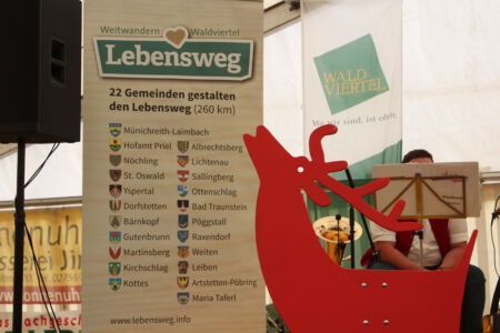 Du musst dir vorstellen, die Idee des Lebenswegs ist jetzt grad mal 3 1/2 Jahre alt. Den Verein Lebensweg gibt es ziemlich genau zwei Jahre. Mir ist auch sehr klar, dass wir ohne die Landesausstellung in Pöggstall 2017 es nie geschafft hätten, ein solch umfassendes Gemeinschaftsprojekt Wirklichkeit werden zu lassen. Die 22 Gemeinden hatten sich für die Landesschau in einer Arbeitsgemeinschaft schon getroffen und hatten das Ziel, die Landesausstellung zu einer ganz besonderen werden zu lassen.