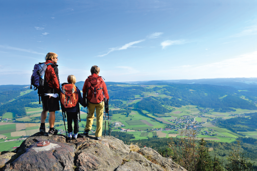 Gleich zu Beginn geht es auf einen „heiligen“ Berg. Wer den Peilstein bezwingt, hat einen richtigen Gipfel erklommen! Belohnt wird man mit einem Ausblick ins hohe Waldviertel. Danach führt der Weg den Bergrücken entlang und es geht für etliche Kilometer außerhalb des Siedlungsgebietes im Wald dahin. Genug Proviant mitnehmen ist angesagt: Die einzige Verpflegungsstelle auf dieser Monsteretappe ist das Gasthaus „Rote Säge“ und danach hat man noch einige Täler und Berge vor sich!