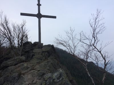 Hole mir meine Ahnen mit meinen Eltern gedanklich her und so schaffe ich es doch, nach eindreiviertel Stunden endlich bei der Schutzhütte anzukommen! Im Schutzraum den Rucksack abstellen, gleich einheizen und dann noch ganz kurz zum Gipfelkreuz des Kleinen Peilsteins hinauf.