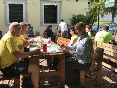 Da hatte sogar der Wettergott ein Einsehen!! War es anfangs trüb und die Regenwolken hingen tief, wurde es immer wärmer und sonniger. Das perfekte Wetter also dann für den gemütlichen Ausklang in der Schlosstaverne in Leiben.