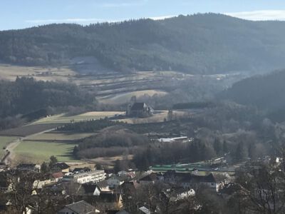 An einem wunderschönen klaren Wintertag im Jänner wollte ich einen Teil des Abschnittes 10 des Lebensweges von Pöggstall nach Braunegg erkunden. Genau zum Läuten der Mittagsglocken in Pöggstall ankommend, war mein erster Weg gleich in die spätgotische, wunderschöne Kirche St. Anna direkt am Marktplatz. Mit dem angrenzenden Schloss durch eine Brücke verbunden, entstand eine interessante Einheit.