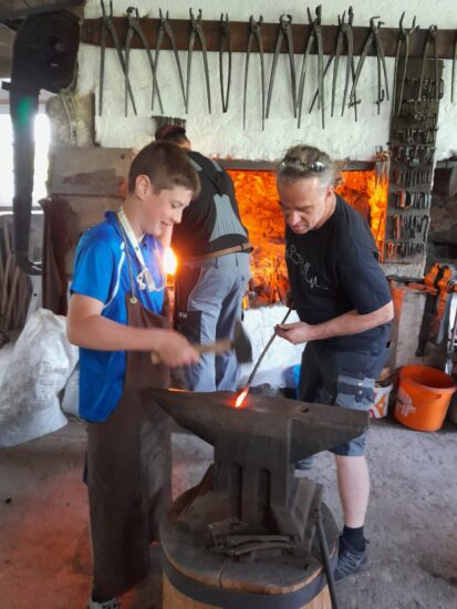 Mitunter genauso heraufordernd und schön wie die ersten sechs Lebensjahre, war auch die Wanderung und brachte so manche Überraschung mit sich, wie z.B. eine Sonderführung in der Perndlschmiede der Fam. Haslinger, bei der sich Interessierte an der Kunst des Schmiedens versuchen konnten.