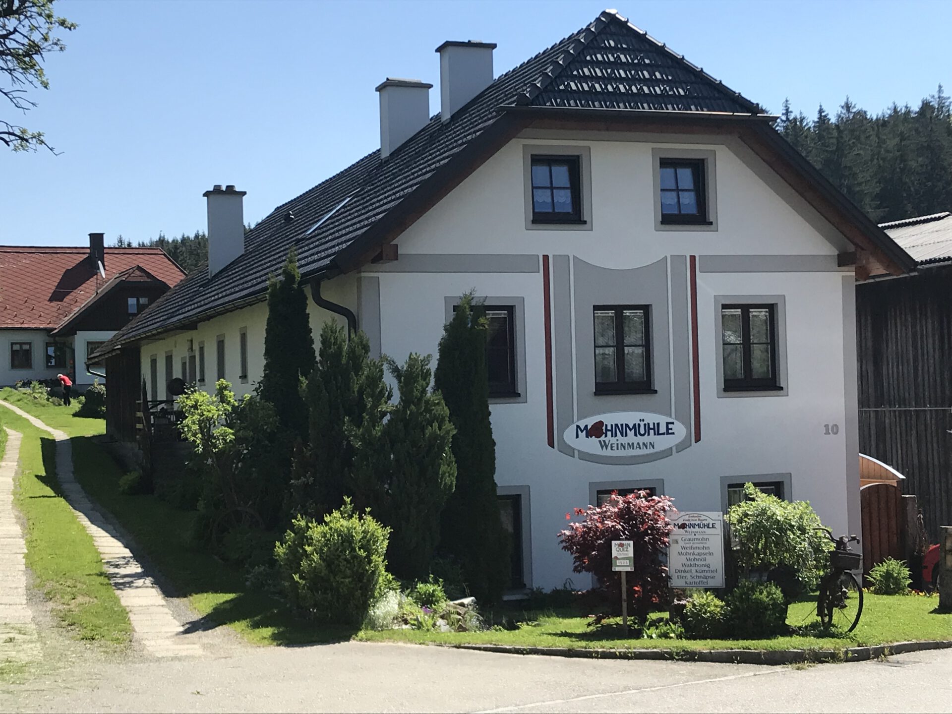 Entlang der Großen Krems, die in diesem Bereich sanft durch Wiesen und helle Wälder mäandert, können wir beinahe eben und ganz bequem entlang des romantischen Flusslaufes dahinwandern. Es dauert gar nicht lange und wir erreichen den mittlerweile sehr bekannten Ort Armschlag. Es begann damit, dass sich die engagierten Wirtsleute Rosemarie und Johann Neuwiesinger darauf besannen, den hochqualitativen ,weithin bekannten Waldviertler Mohn in ihrem Speiseangebot verstärkt zu zu verwenden und wundervolle Rezepte entdeckten und entwarfen.