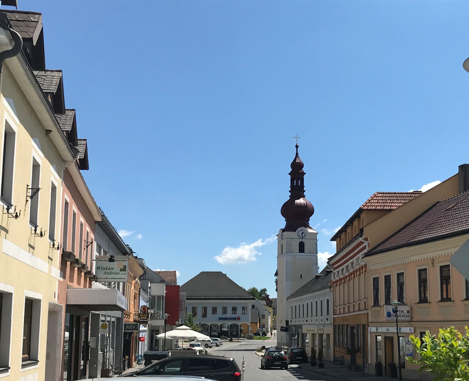 Beim „Eintritt“ nach Ottenschlag wird man gleich vom gepflegten „Unteren Ortsteich“ empfangen, wo man dann direkt am repräsentativen Schloss vorbei in den Ortskern geht.