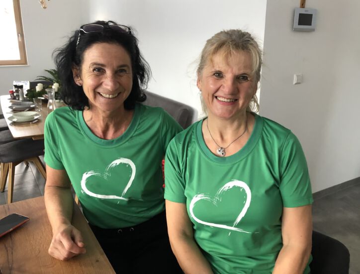 Getrennt reisten wir mit den Autos nach Raxendorf an. Stefan, der dort wohnhafte Kollege, chauffierte uns nach Pöggstall, unserem Ausgangspunkt. Da dies das allerletzte Stück des Lebensweges war, wurde es auch ganz besonders zelebriert. Gleich zu Beginn überraschte uns Monika mit Lebensweg Geschenken, einem T-Shirt, einem Sektfläschchen und mich noch mit einem Holzherz, wie passend.