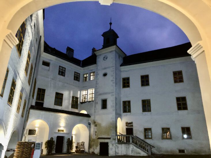 Wir besichtigten noch den Innenhof des hell beleuchteten Schlosses und beendeten die Etappe mit der Erkenntnis, dass diese für uns doch nicht so anstrengend war, wie beschrieben und vermutet.