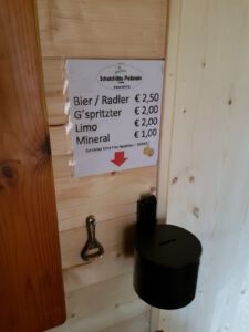 Nach dem doch etwas beschwerlichen „Erklimmen“ des Peilsteins, lädt die neue behagliche Schutzhütte der Naturfreunde Yspertal zu einer verdienten Zwischenrast ein. Da die Schutzhütte nicht bewirtschaftet ist, sollte man einen Imbiss mit dabeihaben. Für Getränke ist jedoch gesorgt, auf das Bezahlen sollte bitte nicht vergessen werden😉.